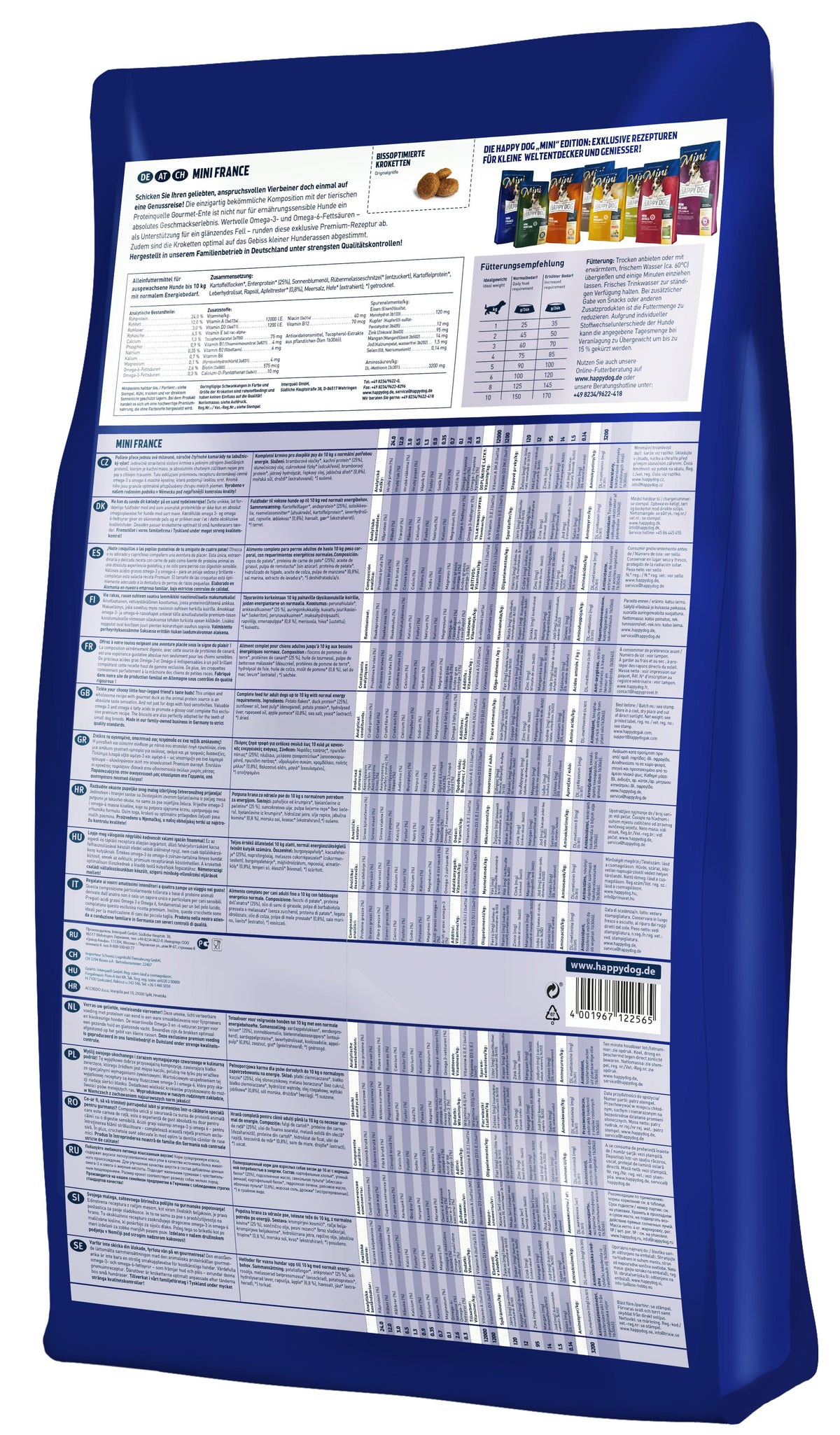 Mini France delights small dogs (up to 10kg) with hearty duck and potatoes for energy and vitality. Grain-free and packed with omega oils, it supports a shiny coat and is perfect for sensitive dogs.