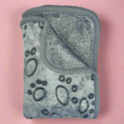 Introducing our super cute and cozy fleece dog blankets in grey. Perfect for keeping your dog comfortable and warm at home, in the car, over furniture, or for drying after bath time.