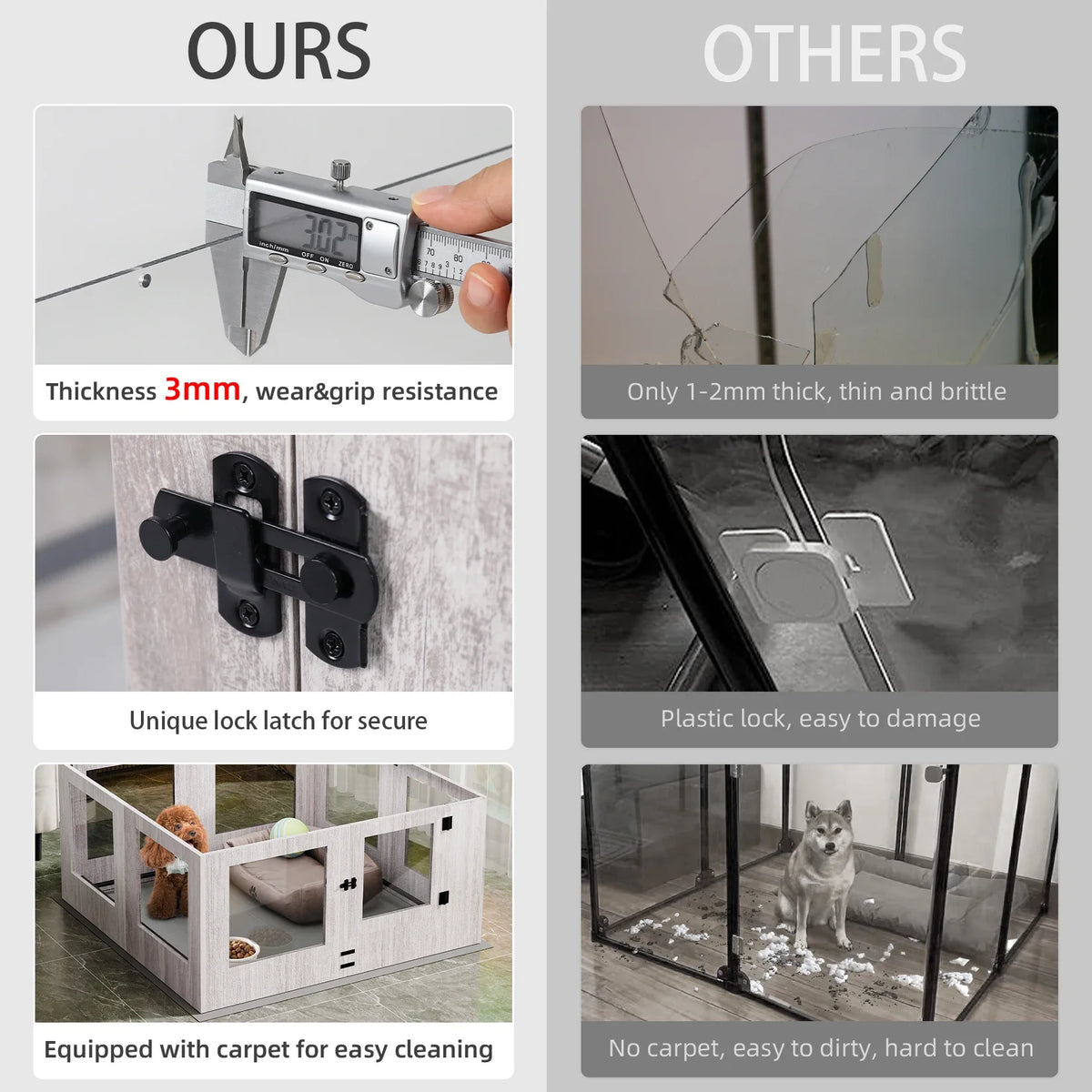 Tempered Glass Dog Puppies Playpen, Indoor Pet Whelping Pen Box Cage, Exercise Fence, with Waterproof Fertility Pad, 8 Panels